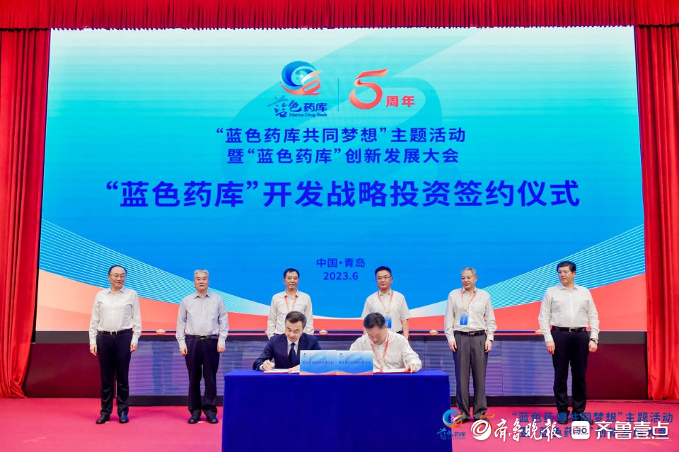 在“蓝色药库”开发战略投资签约环节,与会嘉宾共同见证青岛海洋生物医药研究院和青岛财通集团的战略合作签约仪式。双方将重点围绕“蓝色药库”开发、海洋生物资源利用、海洋大健康产品产业化等多个领域展开合作。
