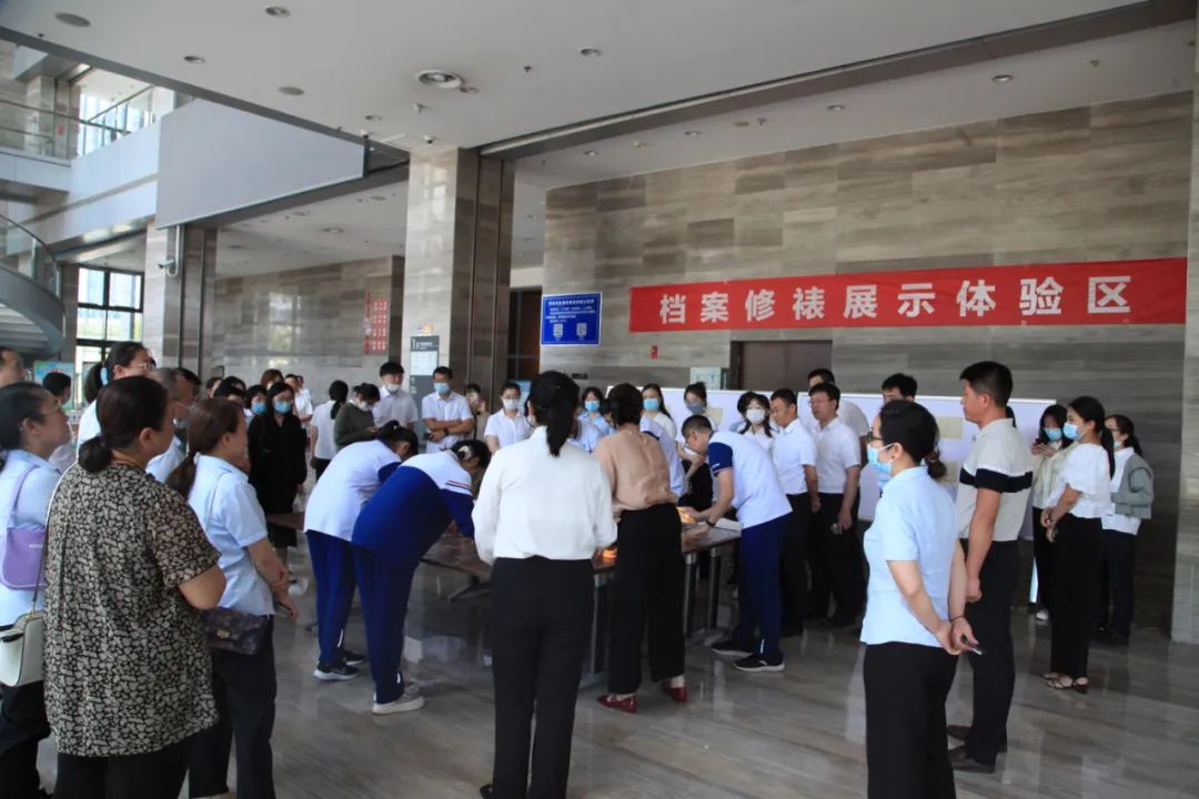随后,淄博市档案馆组织了档案馆开放日活动,现场百余名市民参观了查档大厅、档案库房、特藏室等区域及淄博市“黄河记忆”专题档案展、档案编研成果展等,并在档案修裱体验区、档案小知识竞答区等互动区域,亲自参与档案修裱活动、了解档案知识,直观了解档案工作,体验档案修裱乐趣,近距离感受档案文化的独特魅力。