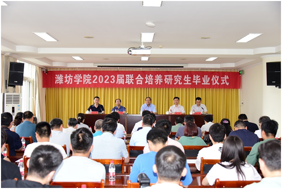 6月19日,潍坊学院举行2023届联合培养研究生毕业仪式。学校校长冯滨鲁、副校长李英德,山东科技大学研究生院院长韩作振、副院长岳国伟,学科建设办公室副主任张明光出席仪式。