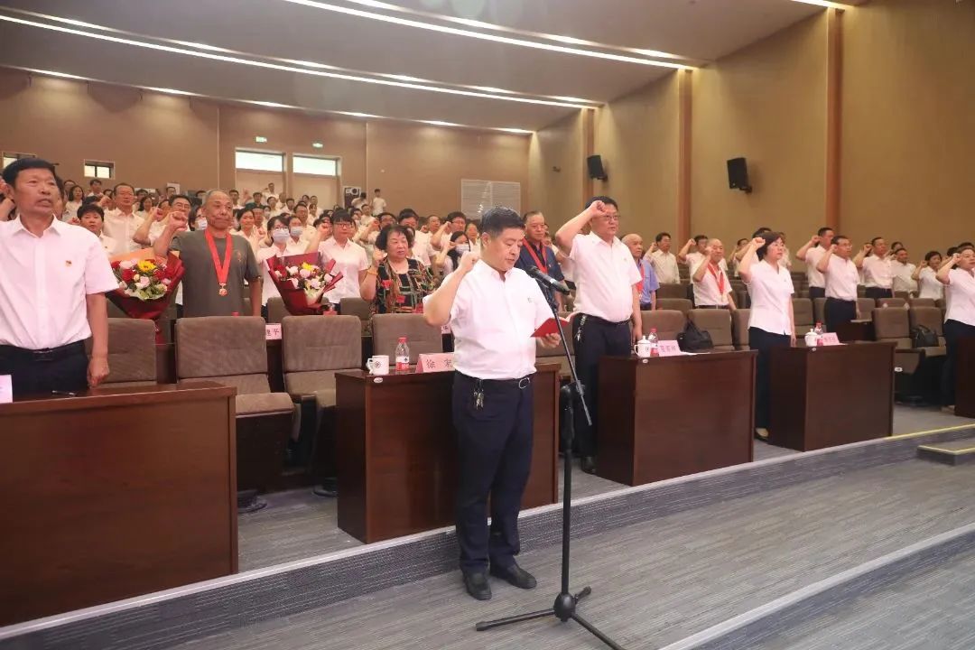 “我志愿加入中国共产党”,在徐书记的带领下,全体参会人员重温入党誓词。大会在《没有共产党就没有新中国》的歌声中落下帷幕。