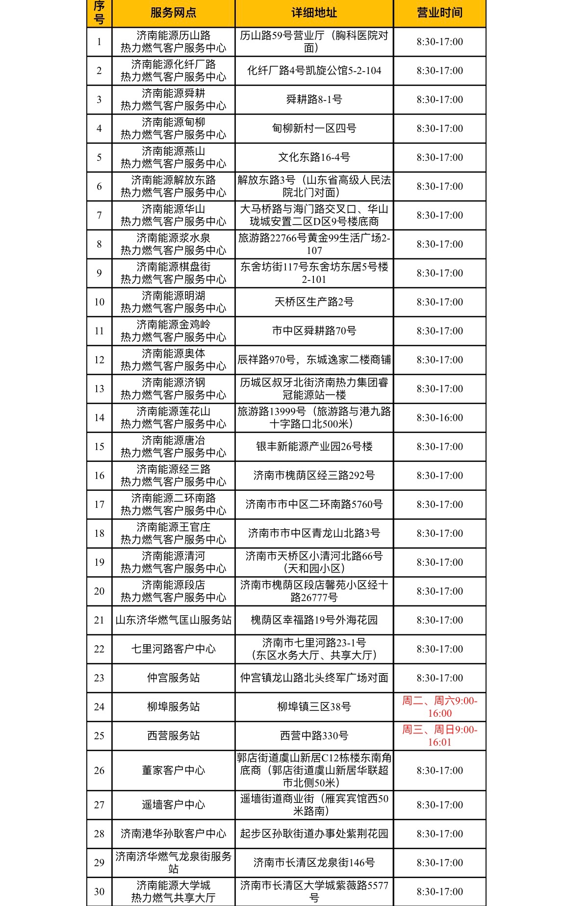 二、热力燃气客户服务大厅预约登记。为满足广大燃气用户的预约登记需求,在燃气用户胶管更换专项行动实施期间,济南能源燃气企业30个热力燃气客户服务中心均可提供胶管更换预约服务,用户可根据自身地点,合理安排时间就近前往服务大厅办理软管更换预约业务。