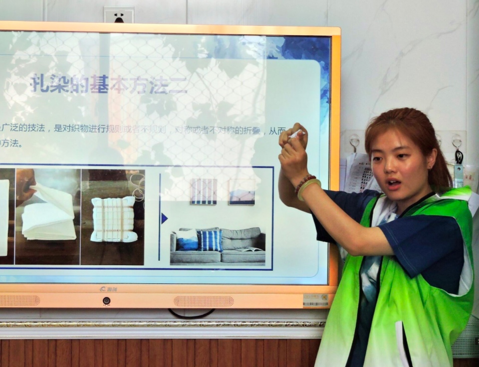 为传承并发扬中华优秀传统文化,引导幼儿在实践中摸索中华传统文化的力量,培养孩子们的文化自信,山东女子学院艺术设计学院“美丽乡村建设”志愿服务队于7月3日在济南市市中区赵庄幼儿园开展了“小扎染 大传承”传统文化主题课堂。