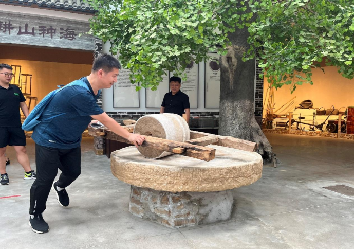 山东女子学院马院教职工在“乳山市牡蛎文化博物馆”现场教学点体验推碾子