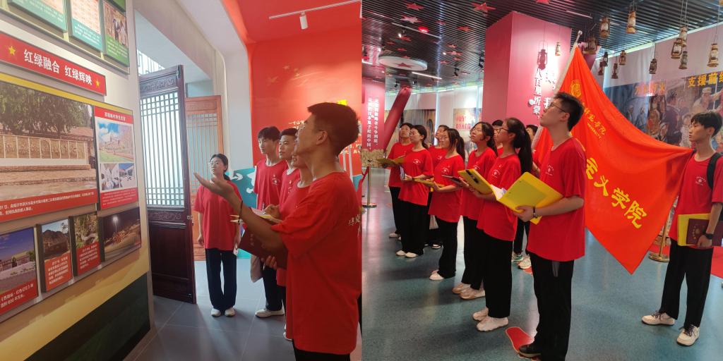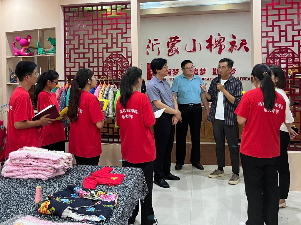 精神赓续、文化传承——中华优秀传统文化“两创”的生动实践。星火青年服务队先后到蒙山龙雾茶博园、沂蒙小棉袄民俗文化园进行调研。学生们亲身感受到乡村振兴中如何实现“农业+旅游+服务业”三产融合发展的实践道路,感受到杨庄镇充分发挥当代“老奶奶”小棉袄制作传统优势,弘扬传承沂蒙精神,创新“非遗+”发展新模式,承载乡音乡情、记忆乡愁、孝善文化,深刻理解了习近平总书记强调“两个结合”的重大时代价值和实践意义。“从自身的文化基因中寻找发展的内生动力”,让中华优秀传统文化“活起来”,融入人民群众的现实生活。