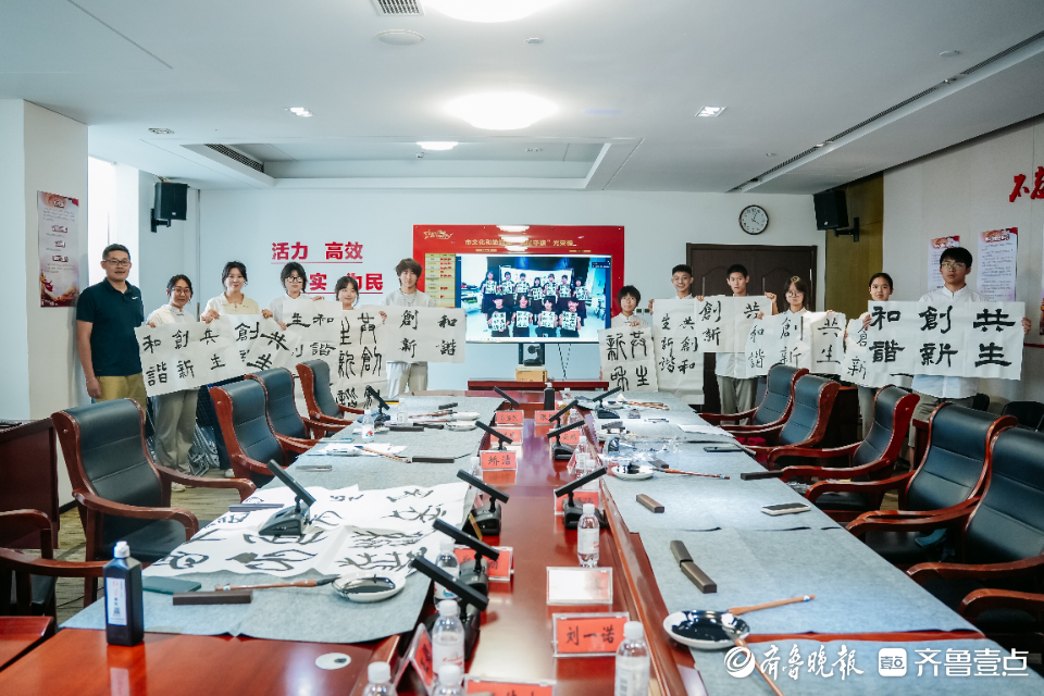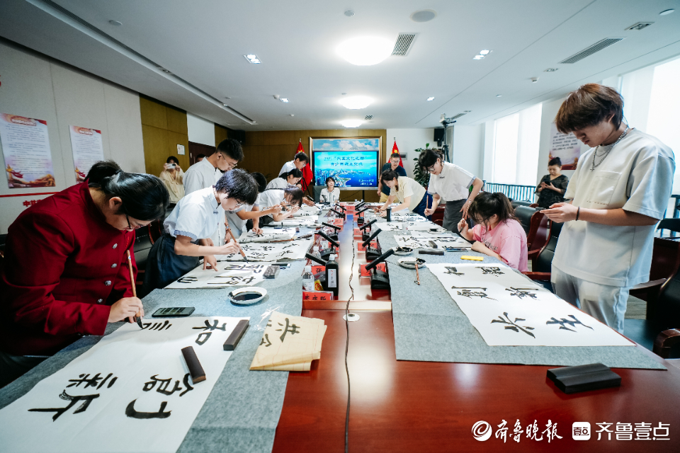 青岛实验高中马浩然、郑泉丽同学挥毫泼墨,展示中国迄今为止发现的最早汉字—甲骨文,以十二生肖字书写甲骨文,象形性的文字表现十二种动物瞬间成为全场瞩目的焦点,日本学生纷纷赞叹和讨论。