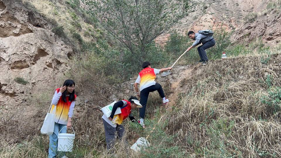 在甘肃期间,团队成员们查看了前期使用“保水固土”凝胶栽种的树木生长情况,并使用改良升级后的凝胶进行了新一批树苗的种植,此次还对当地山体滑坡情况进行了分析并拟定了将草种、土壤与凝胶混合均匀后喷射至边坡的水土流失综合解决方案。该方案将由化学与材料科学学院与甘肃第四建设集团六公司合作实施。