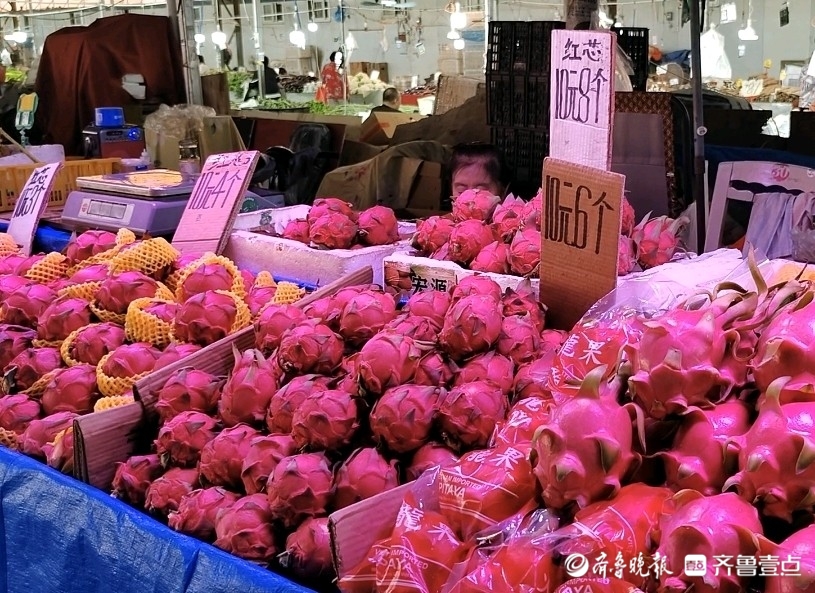 在济南八里桥蔬菜批发市场,10元3个、10元4个、10元6个……不同价格的火龙果吸引着过往顾客的目光。“现在火龙果真的便宜了!”正在该批发市场买菜的肖女士表示,她曾花10元买了4个火龙果。“个头也不小,看到火龙果便宜了特意买给女儿吃。”