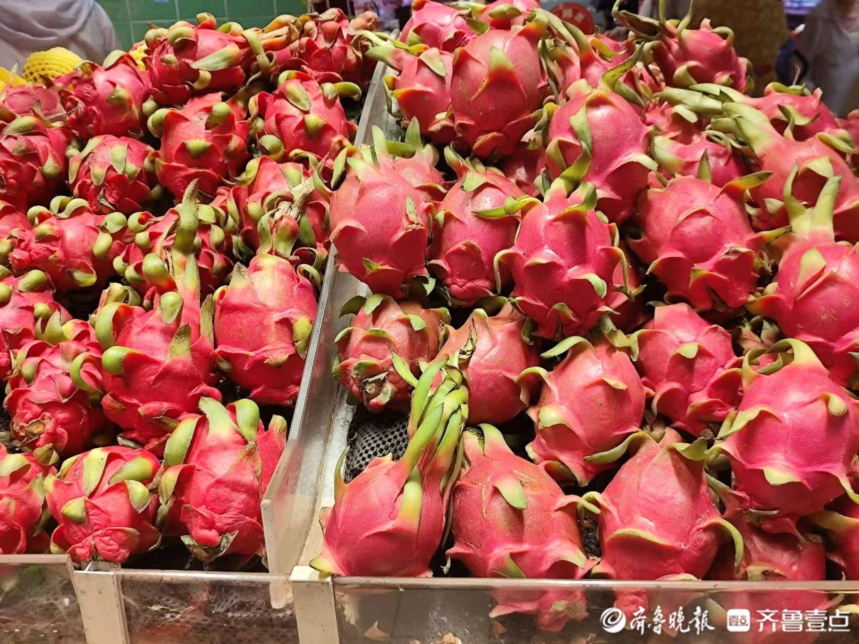 近日,有济南市民发现火龙果降价。在不少社区超市的团购群中,红心火龙果的活动价为1元1个,有市民直接购买了10个。火龙果降价了吗?8月3日,记者走访多个超市与蔬菜批发市场进行调查。