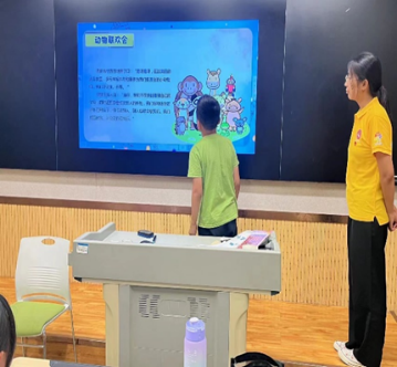 志愿者老师首先解说热身游戏规则,同学们需要在老师下达口令时,做出相应的动作。“蚂蚁搬家、兔子蹦、狮子叫……”伴随着同学们银铃般的笑声,模仿动物运动会也正式开始。热身游戏使同学们放松了心情,增进了同学间的互动,也为后续团辅互动与沟通奠定了基础。
