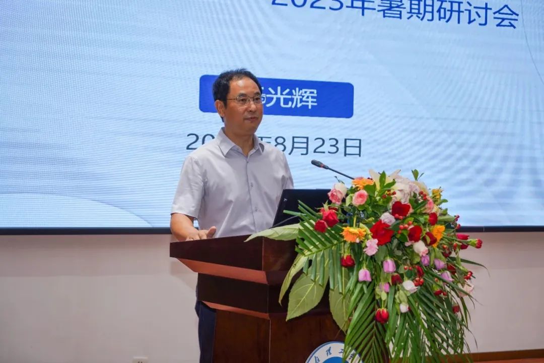 校长于光辉作了题为“锚定航向 创新发展 努力推动学校再上新台阶”的动员讲话,为研讨会统一了思想、指明了方向、明确了重点。他简要回顾了学校2023“创新发展年”确定的工作主线和要点,充分肯定了上半年在党建思政、校庆“七个一”、内涵建设、“1+6”人才工程、科研及服务社会、招生工作、学生工作以及绿色平安校园建设等方面取得的成绩和阶段性成果,分析了学校在高质量发展、规范发展形势下面临的主要任务和重要问题,就“双六”办学思路的理解与落地、合格评估、和合文化、新校区建设、学科专业课程一体化建设、创新发展等重要问题提出了可供充分讨论研究的思路和方法。随后,校领导结合分管工作及暑期调研情况依次进行研讨交流,围绕学校关键指标完成情况、新校区建设进展情况、学科专业设置优化调整、实验室运行与管理、师资队伍建设、招生就业工作新形势以及辅导员队伍专业化职业化建设等重点工作,提出了许多新思考、新想法和新举措,并对下一步工作进行部署。