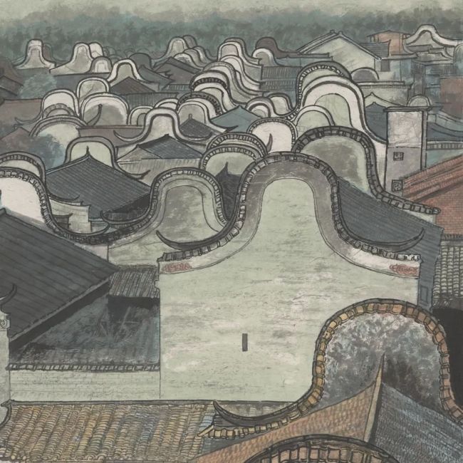 《粤·上岳古镇》(局部)2022年 124x245cm 纸本·彩墨