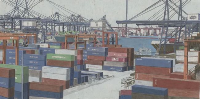 《港·葵涌码头》 2022年 124x245cm 纸本·彩墨