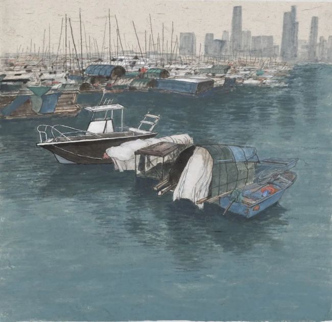 《港·避风塘》 2022年 124x124cm 纸本·彩墨