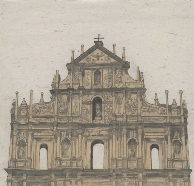 《澳·大三巴》 2022年 124x124cm 纸本·彩墨