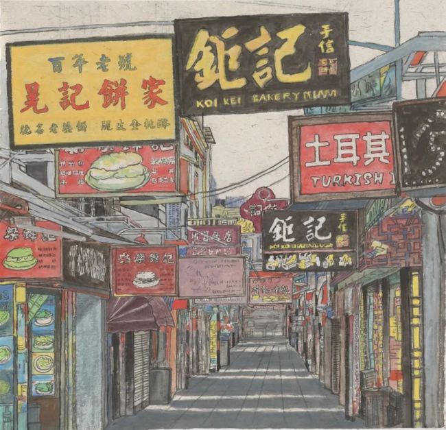 《澳·官也街市》 2022年 124x124cm 纸本·彩墨