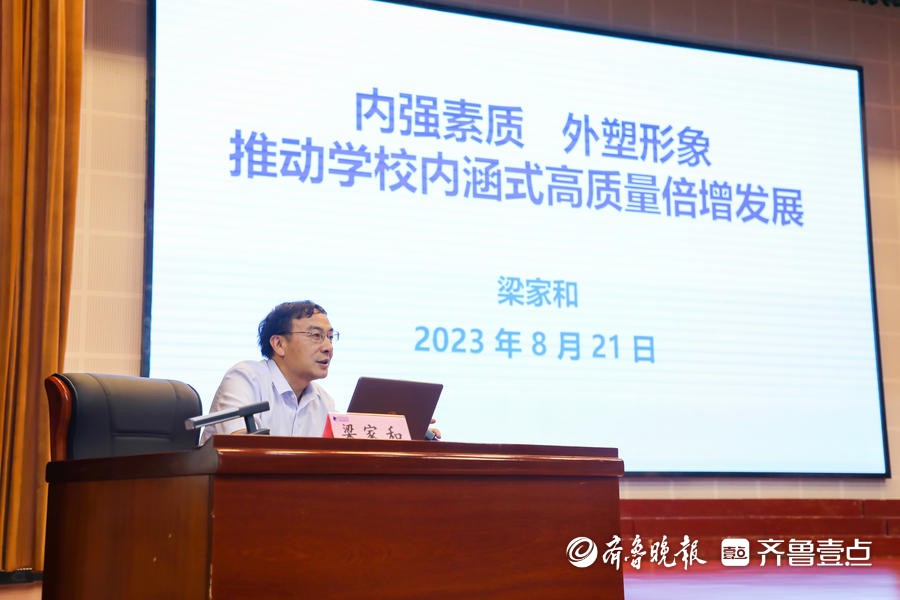 8月21日上午,学院2023年第二期教师培训班开班仪式在礼堂举行。学院党委副书记、院长梁家和博士以《内强素质 外塑形象 推动学院内涵式高质量倍增发展》为题,为全院教师开讲培训第一课。