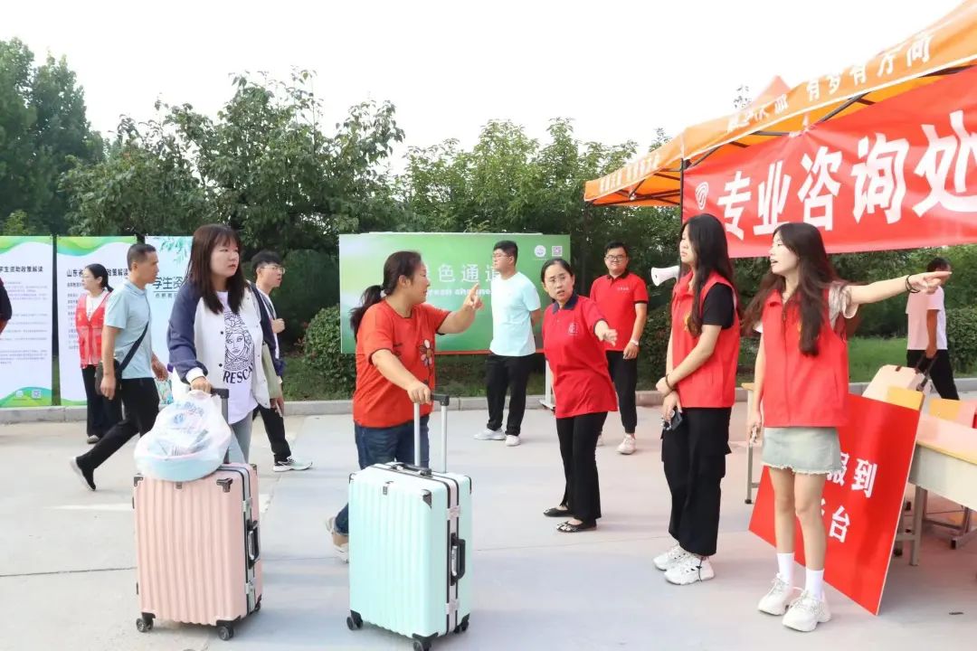 山东力明科技职业学院董事长、校长王力一教授专门来到新生报到现场,热情迎接2023级新生,诚挚慰问迎新工作人员,学院董事会、院委会领导陪同。