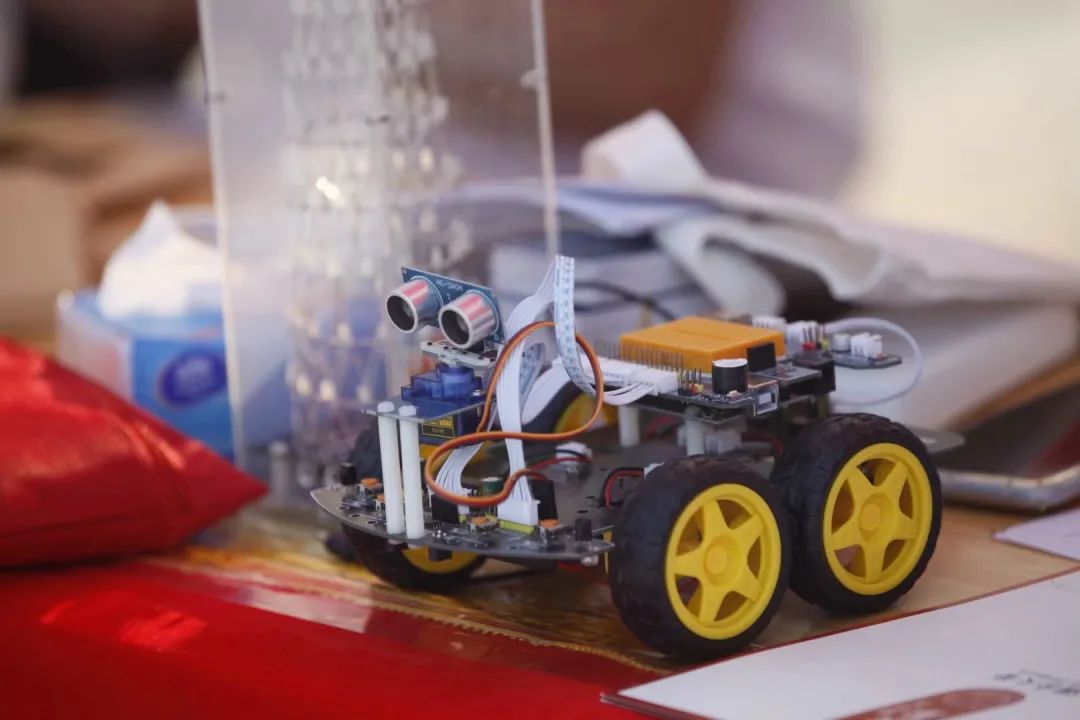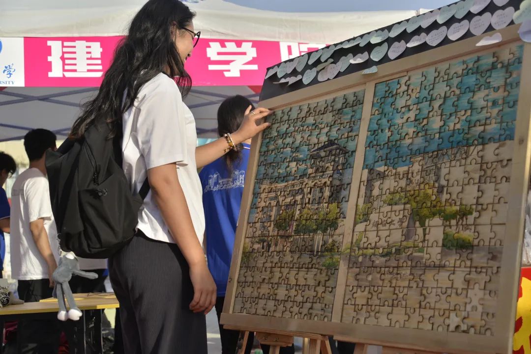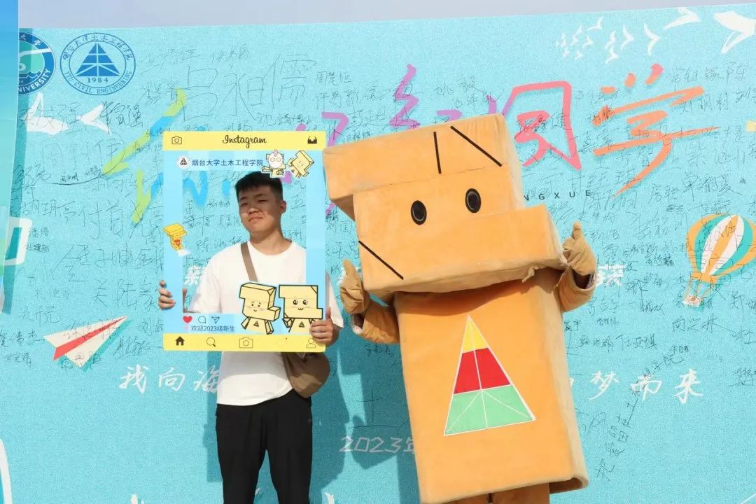 计算机与控制工程学院特别邀请嘉宾——机器人“小智”,在现场为新生们介绍学院历史、表演花式舞蹈、送上暖心祝福;建筑学院学生用木板自制了激光雕刻的烟大建筑模型书签,设计了以学校南门为背景的拼图,让新生们共同拼出烟大精彩画卷;“开学第一课,从反诈开始……”法学院为新生普及反诈知识,送上“反诈小熊”。