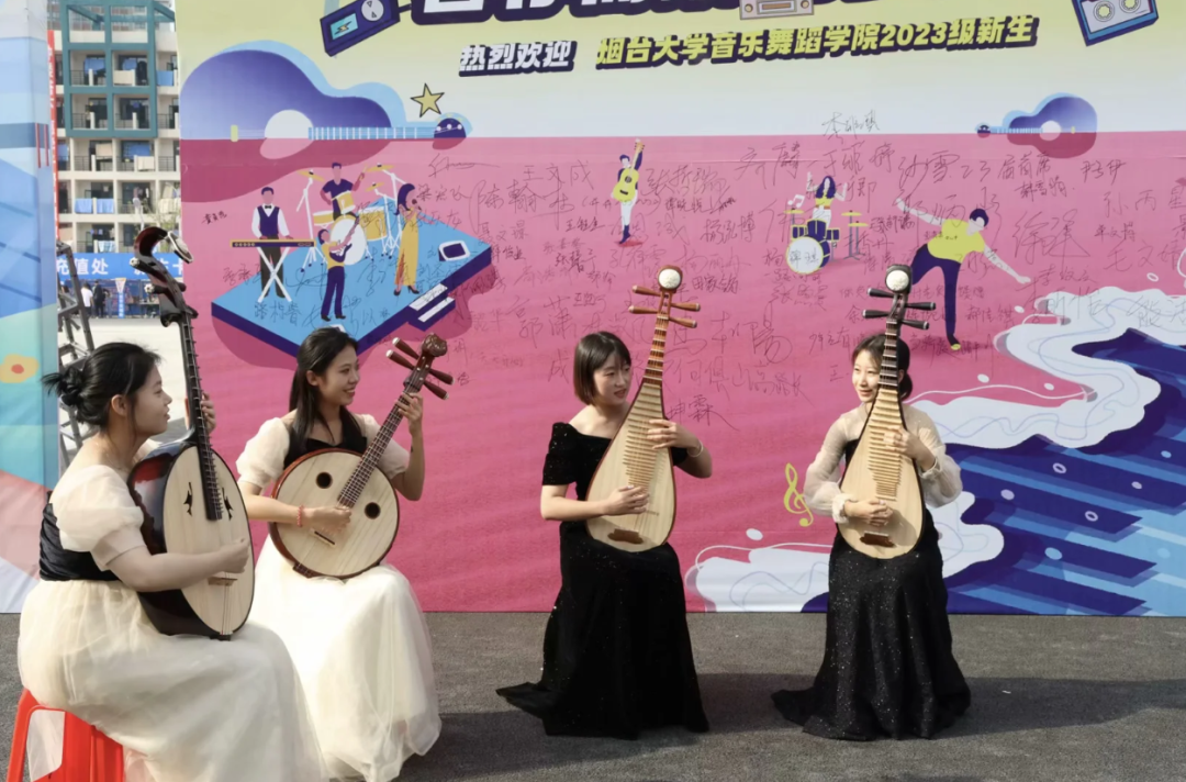 环境与材料工程学院为每位新生准备了汇聚环材优秀学子大学心得和考研“上岸”备考案例的书籍《青春不毕业》;化学化工学院为新生准备了入学手册、入学明白纸;音乐舞蹈学院指玲珑弹拨乐团和舞蹈编导专业的同学们带来精彩表演《高山青》,声入人心、余音绕梁。