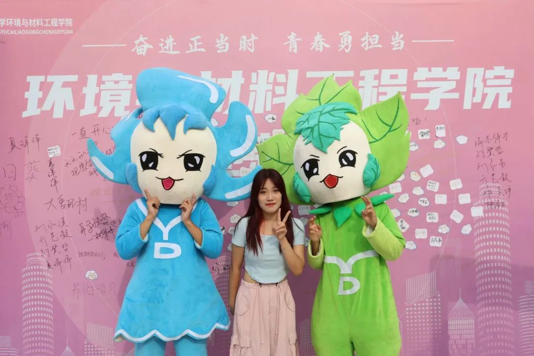 各学院还精心设计了签名墙、欢迎拱门、手持打卡板,新生及家长可以选择任意形式“打卡”留念。吉祥物们也纷纷精彩亮相,物理与电子信息学院的“麦克斯喵”、机电汽车工程学院的“机智君”、土木工程学院的“土木君”、计算机与控制工程学院的“空空”、数学与信息科学学院的“数小鼠”、药学院的“小药丸”、环境与材料工程学院的“森森”“淼淼”、特里尔可持续发展技术学院的“Trier”活跃在迎新场地,引得不少新生合影互动。
