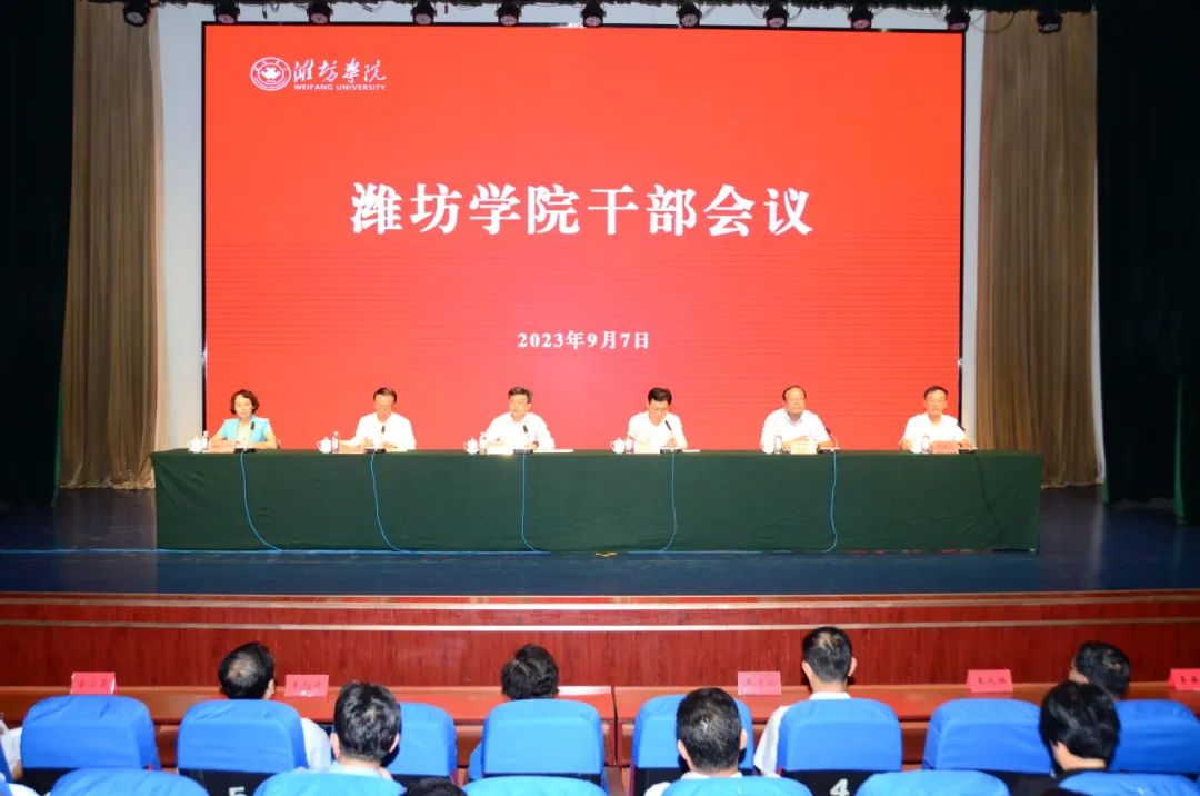 9月7日上午,潍坊学院召开干部会议,宣布省委关于学校领导班子调整的决定。山东省委组织部副部长龚文东出席会议并讲话,山东省教育厅总督学(副厅级)王浩主持会议并宣读省委决定。