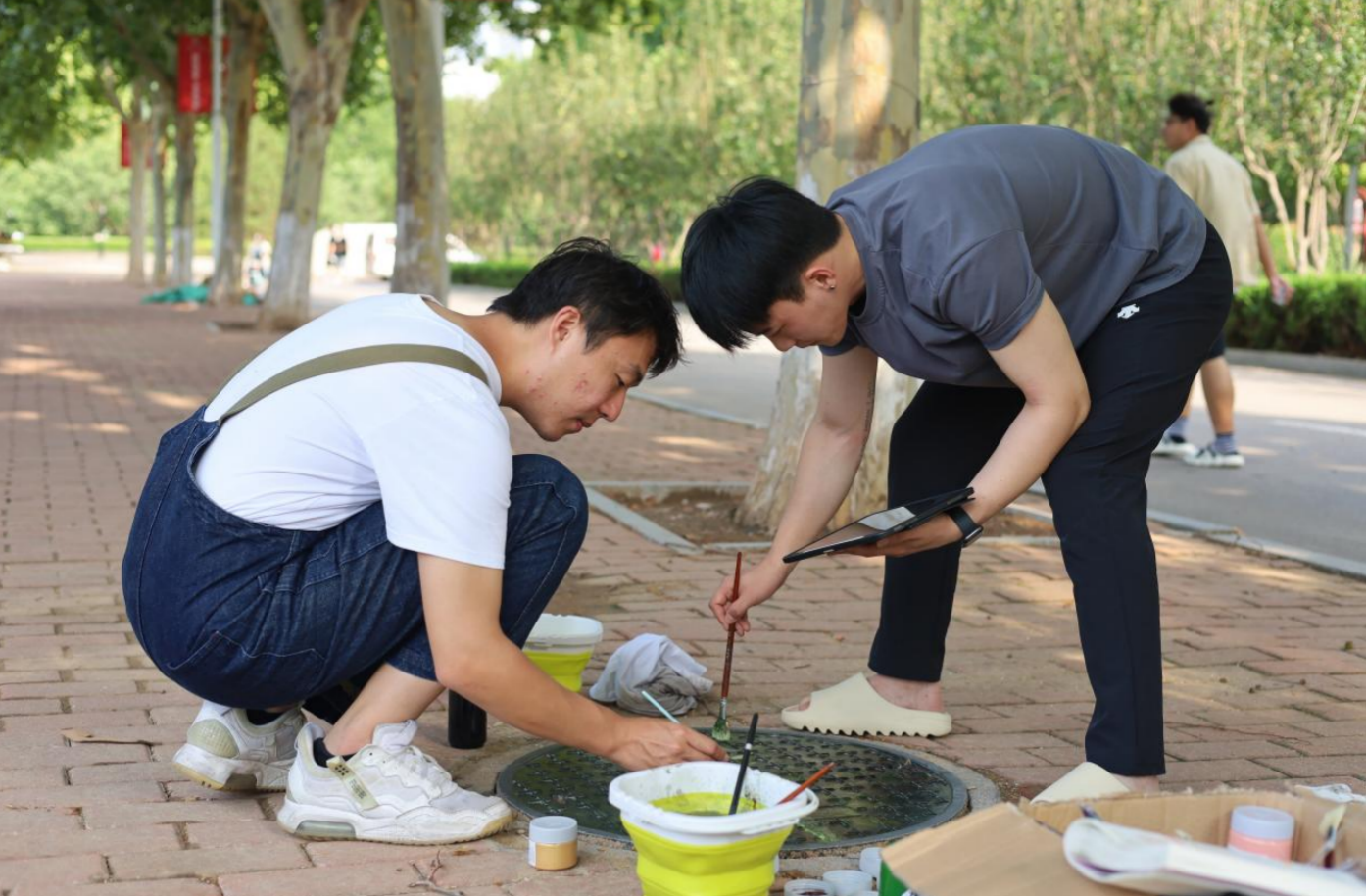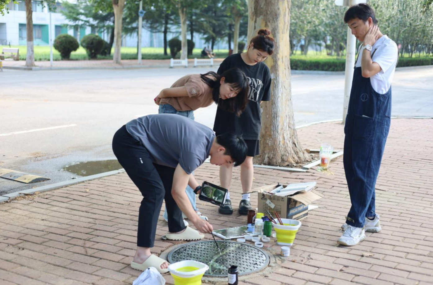 8月27日-9月3日,山东女子学院艺术设计学院学生用手中的画笔为校园里的井盖穿上了美丽的“外衣”,把校园里不起眼的井盖变成一处处靓丽的风景,10幅创意井盖彩绘作品吸引众多师生驻足欣赏。