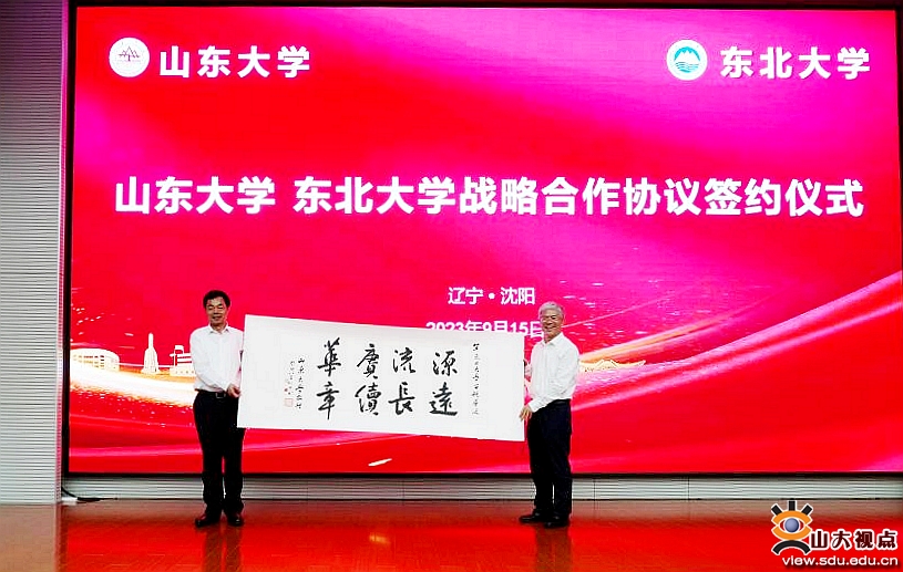9月15日下午,山东大学与东北大学战略合作签约仪式在沈阳举行。山东大学校长、中国工程院院士李术才,东北大学校长、中国工程院院士冯夏庭出席仪式并致辞,山东大学副校长芦延华与东北大学副校长徐峰代表双方签署战略合作协议。仪式由徐峰主持。