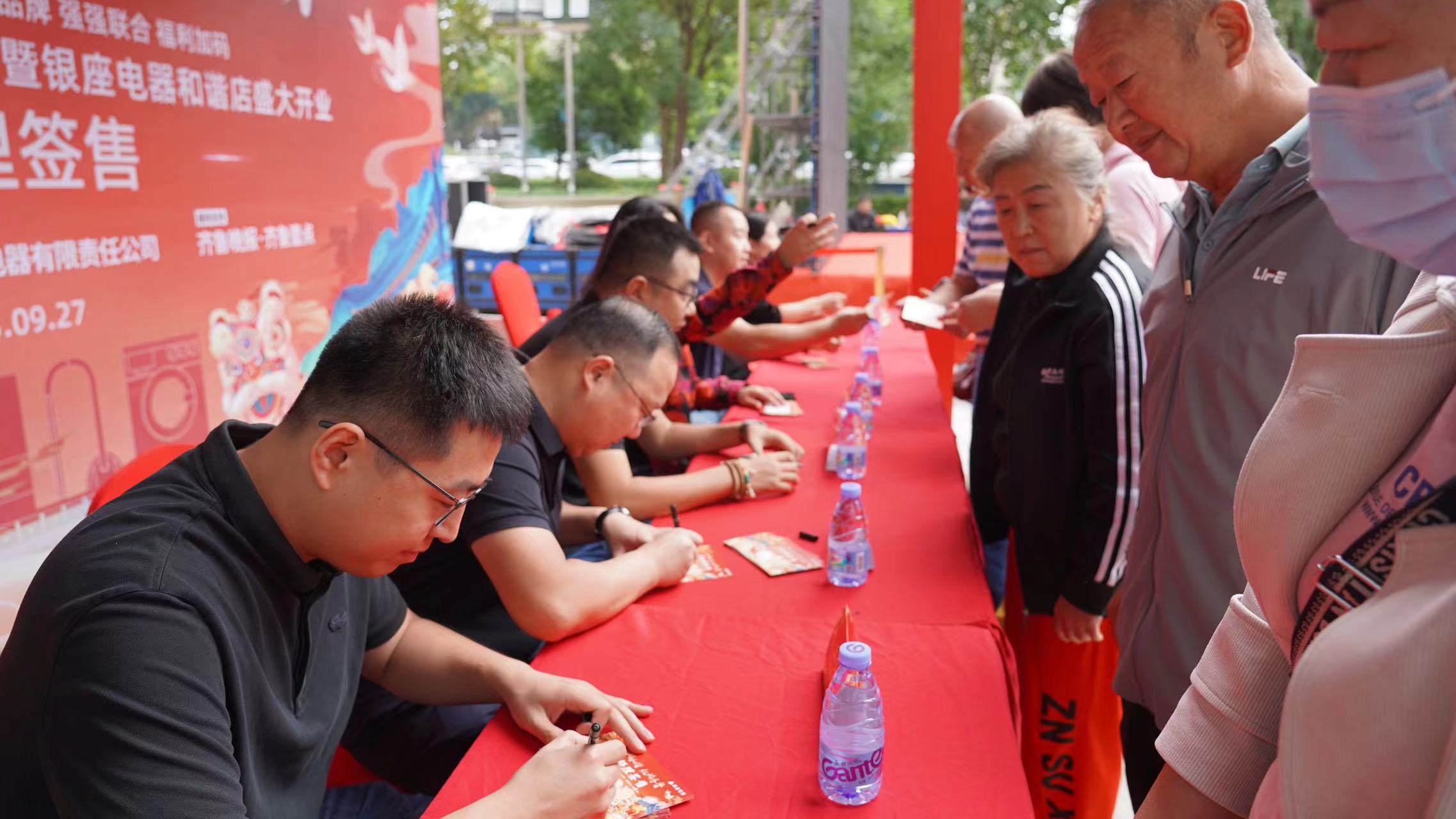 上午八点半,银座电器和谐店门口已有不少市民顾客早早等待入场购物,总经理签售环节火热进行,银座电器及各家电品牌总经理为消费者带来开业惊喜,现场五百位消费者领到全场通用的200元签售卡,跃跃欲试准备入手自己心仪的家电商品。