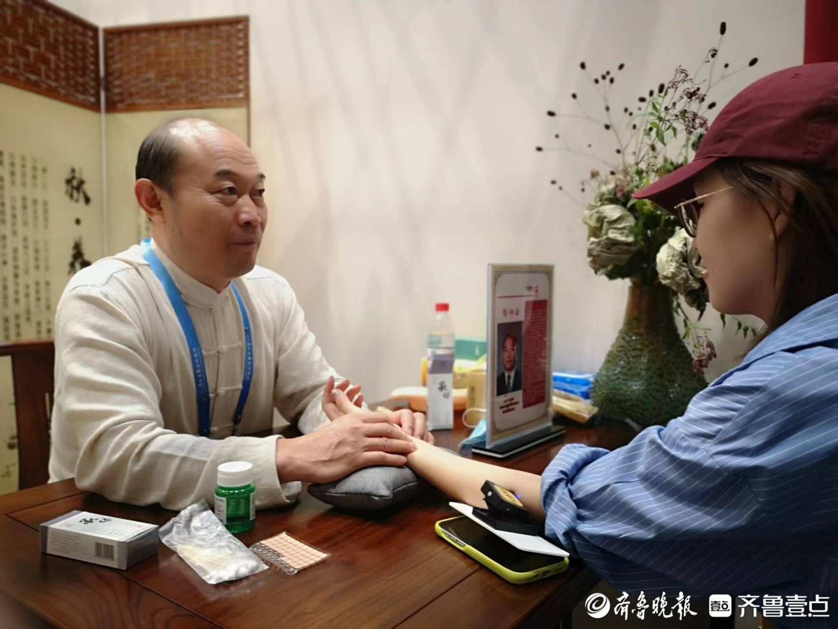 尼山论坛期间,中医药体验馆人流涌动,成为体验者不可错过的“打卡地”,体验馆内几位经验丰富的中医专家号脉开方、讲解病症、推拿针灸,忙得不亦乐乎。