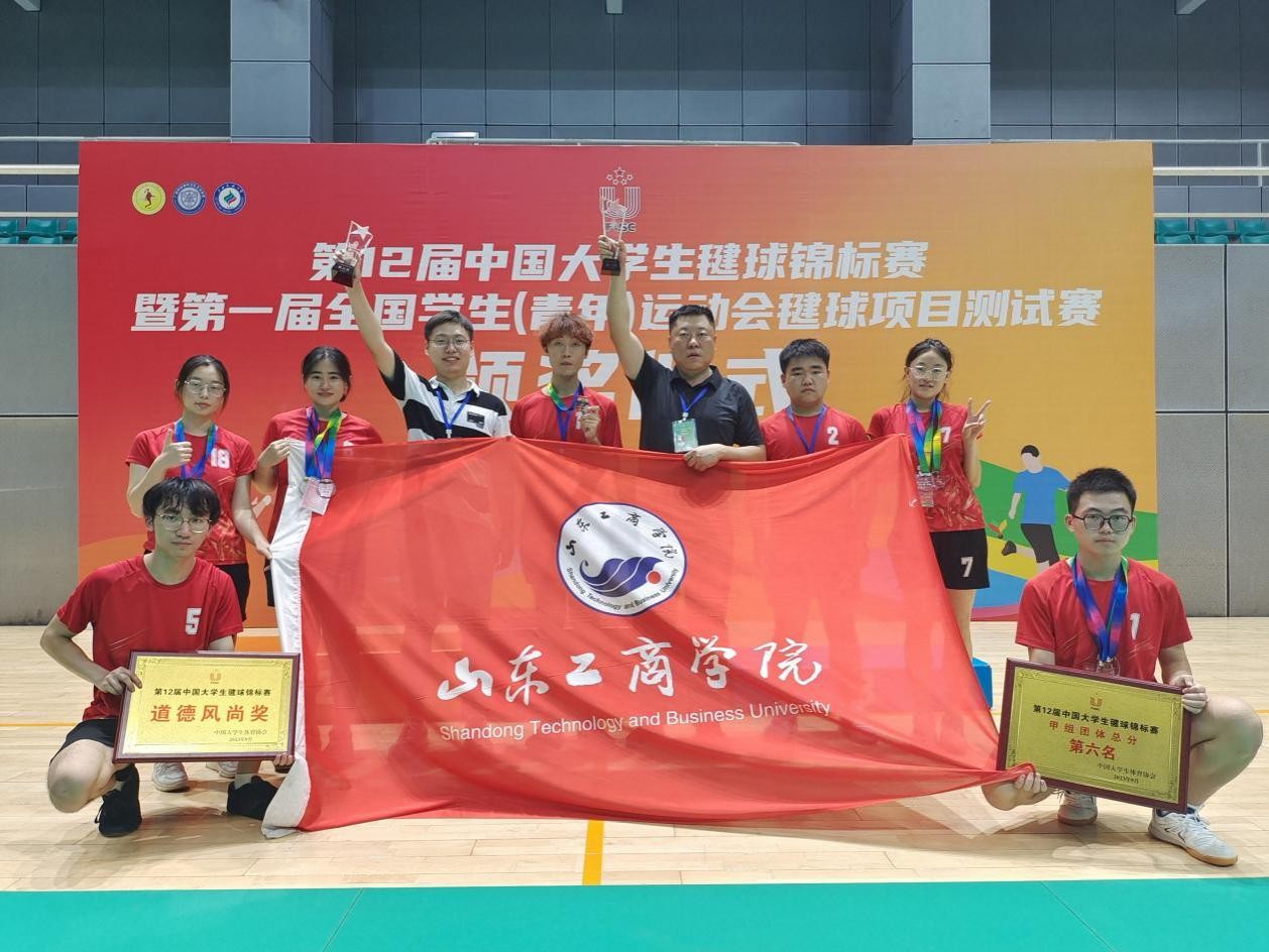 9月16日至9月24日,由中国大学生体育协会主办、中国大学生体育协会毽球分会、广西学校体育卫生艺术协会承办的“第12届中国大学生毽球锦标赛暨第一届全国学生(青年)运动会毽球项目测试赛”在广西民族大学举行。本次比赛共吸引来自南京大学、天津体育学院、吉林大学、武汉体育学院、广西民族大学等45所院校的529名运动员报名参赛。山东工商学院代表队由体育部任宇老师带队,共有7名运动员,经过8天的激烈角逐,最终获得一金、二银、一铜,团体总分第六的优异成绩,学校获评“道德风尚奖”,实现了历史性重大突破。