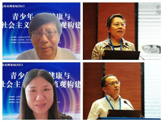 上午专家报告环节由山东师范大学李寿欣教授、山东省社科联学术部二级调研员牛秀琳主持。华东师范大学心理与认知科学学院院长周晓林教授,北京大学心理与认知科学学院苏彦捷教授,北京师范大学心理学部林丹华教授,北京交通大学马克思主义学院副院长郑士鹏教授分别以“自由意志、自主选择与行为控制”“青少年身心健康——发展心理学的视角”“积极发展促进与问题减少并重的儿童青少年心理健康教育”“新时代青年应对‘躺平主义’探析”为题作学术报告。
