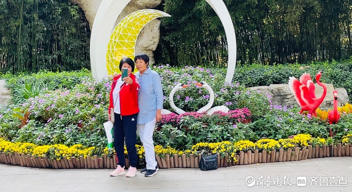 “每年重阳节前后都会来趵突泉看看菊花展,从东门进来一路上都是各种各样的菊花。”在趵突泉公园一处正在布置的菊花造型旁,济南市民刘先生和老伴边观赏边感叹,“虽然很多品种都叫不上名字来,但现在培育的菊花造型都很好看,感觉挺好的。”