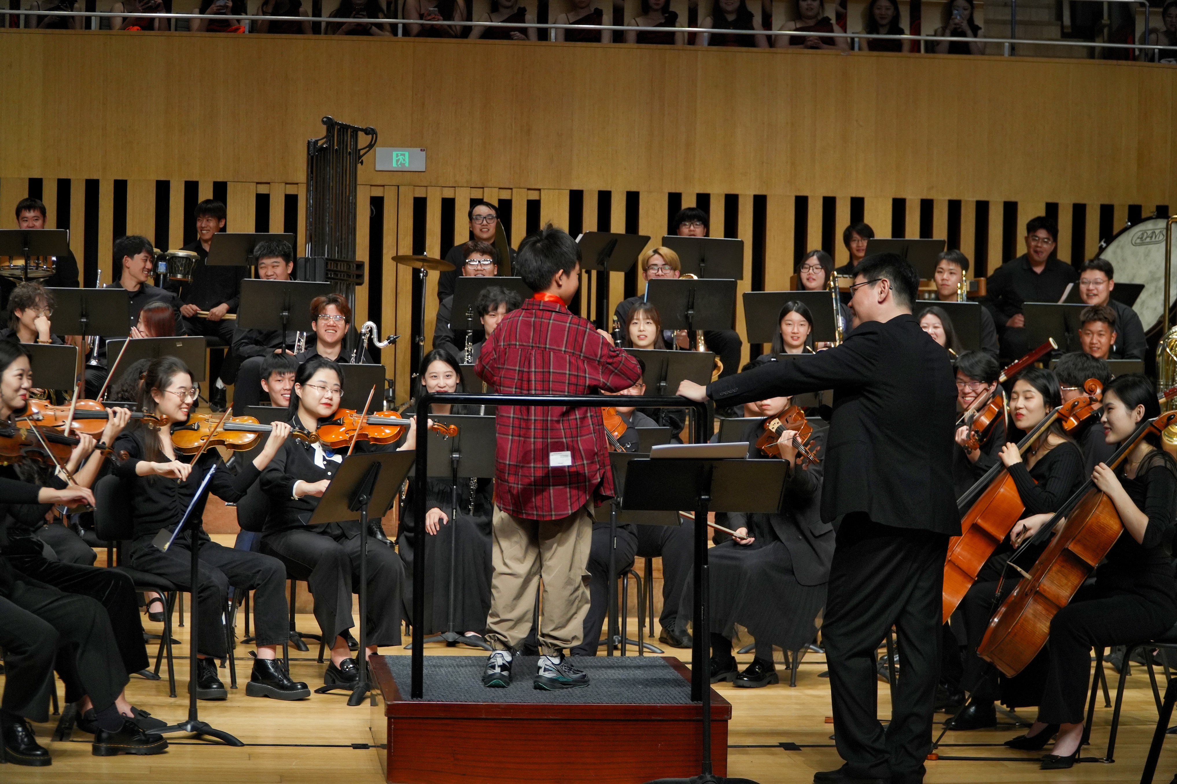 《中国颂》的演奏开始,一场震撼人心的交响乐队和合唱团演奏带给学生们一场音乐的盛宴。