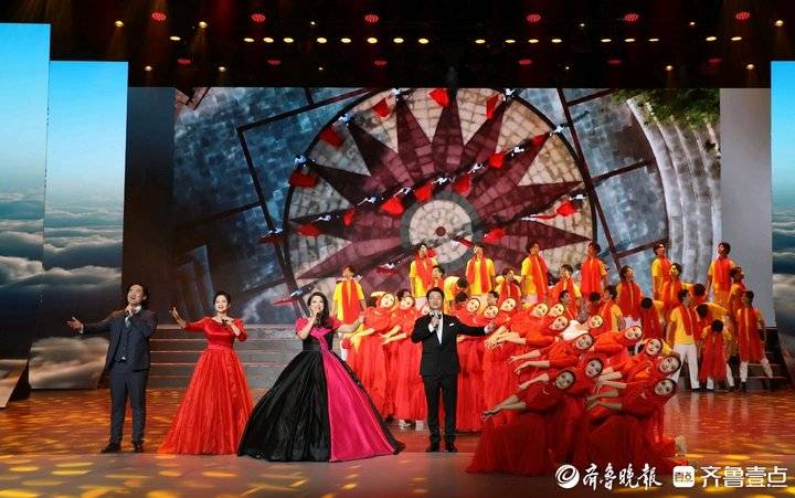 晚会在歌曲《青春当前》热情洋溢的旋律中拉开序幕。由青年指挥家黄炎佳指挥,山东艺术学院音乐学院交响乐团、合唱团带来的作品《中国颂》,奏出了山艺人心中最澎湃的乐章。