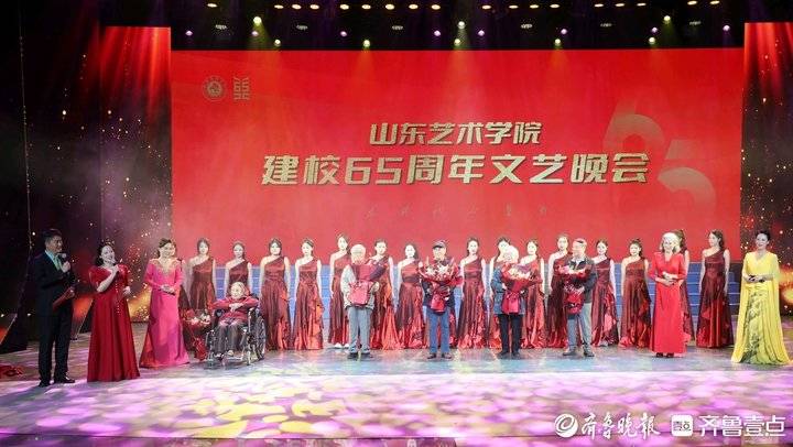 晚会邀请山艺音乐学科5位八十岁以上的老教授来到舞台上,用一首《谁不说俺家乡好》向他们交上了一份感人至深的回课作品,生动展现了65年来,一代代山艺人走出的一条坚守之路、创新之路、育人之路、传承之路。