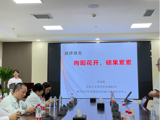 在自由发言阶段,河南医科大学淮河医院梁丽敏医师做题为“向阳花开,硕果累累 ”的进修感言,介绍了她求学麻醉创新诊疗过程及感受。青海省人民医院麻醉学教研室主任李祥教授,福建省人民医院麻醉科副主任、博士研究生导师王翔锋教授、沧州市中西医结合医院戈建磊医师,以及来自大连医科大学第一医院、北京大学深圳医院,北京大学人民医院和首钢医院的学员纷纷发言。