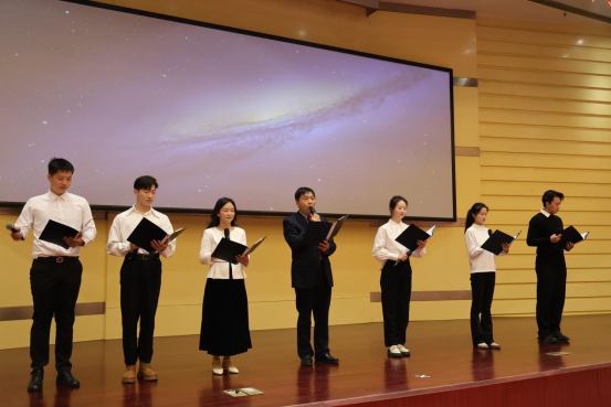 本次比赛诗歌作者严春芳老师表示,湖大四十载的发展让他感到无比骄傲自豪。他对大赛主办方湖北大学新闻传播学院给予高度评价,勉励同学们“要以梦为马,不负韶华,如大海般奔放,展现新时代湖大学子的奕奕风采”。活动最后,严春芳老师携手师生们一起朗诵了其专门为湖北大学创作的诗歌《湖大,我们的妈妈》:“我们有一个共同的妈妈,名字叫湖大……”,以振奋人心的声音为湖北大学送上最美好的祝福。