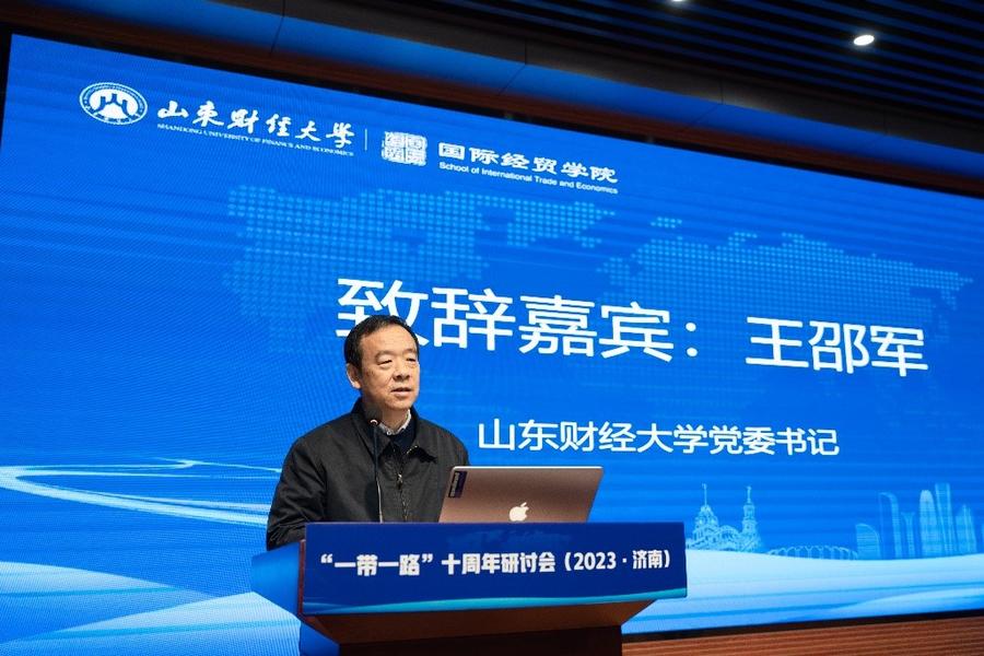 11月10日-12日,由山东财经大学主办,山东财经大学国际经贸学院、“一带一路”经济发展研究中心和山东省社科理论重点研究基地·对外开放与自贸区建设研究基地共同承办的“一带一路”十周年研讨会在山东财经大学举行。研讨会以“‘一带一路’贸易与国际合作”为主题。校党委书记王邵军出席会议并致辞。山东社会科学院党委书记、院长袁红英,山东省发展和改革委员会二级巡视员冯立东,济南高层次人才发展促进会会长、欧亚院士凌沛学,德州学院副校长李甲亮等专家学者受邀出席会议。副校长谢申祥主持会议。