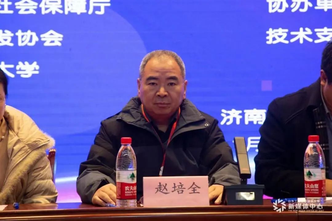 裁判长赵培全教授宣布2023年山东省“技能兴鲁”职业技能大赛——“运华-翰霖杯”新能源汽车营销技能竞赛正式开赛。