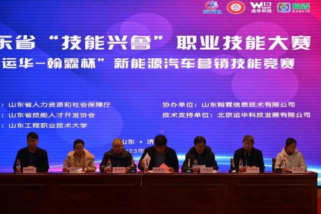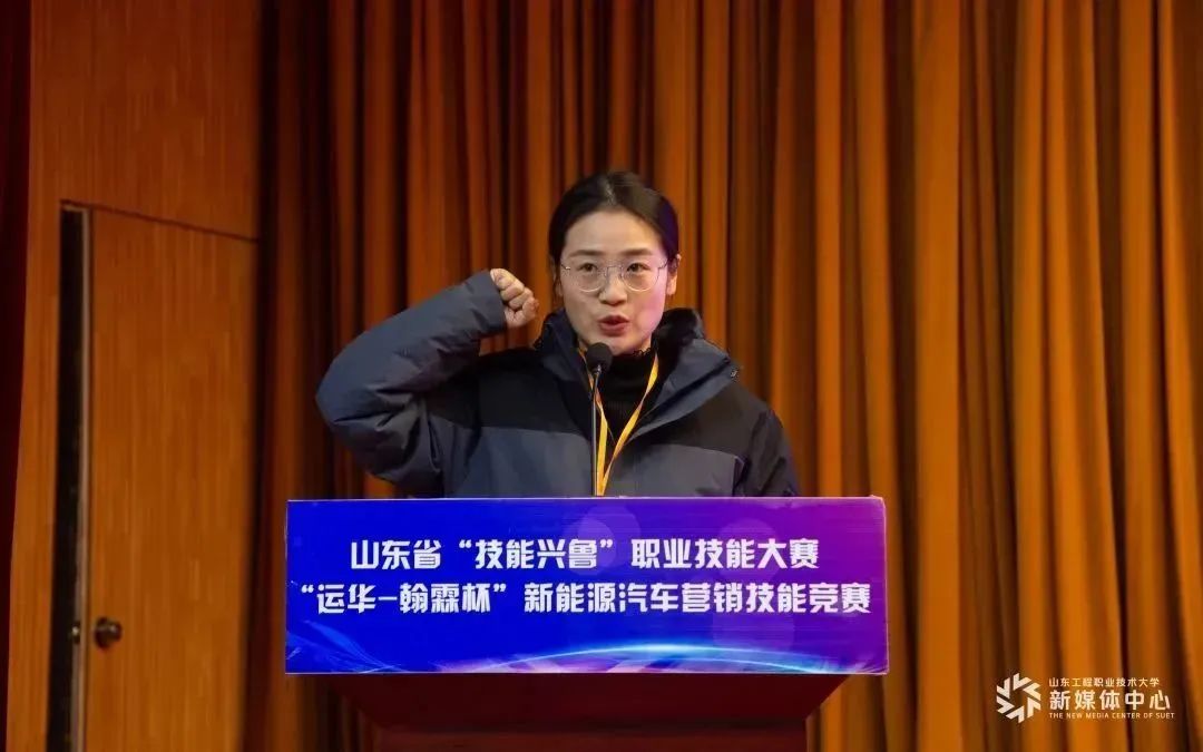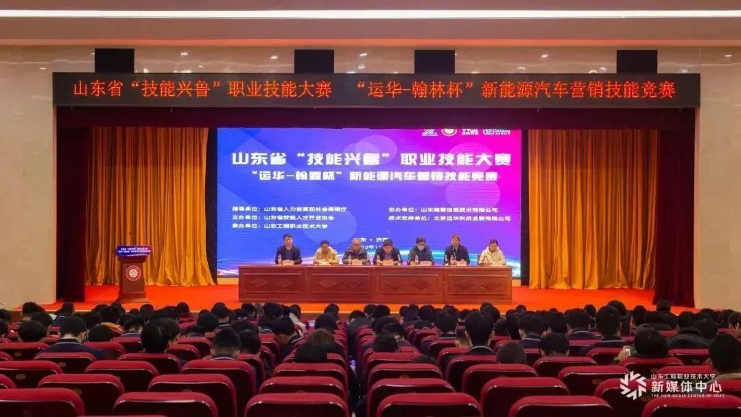 11月24日下午,2023年山东省“技能兴鲁”职业技能大赛——“运华-翰霖杯”新能源汽车营销技能竞赛在山东工程职业技术大学举办。