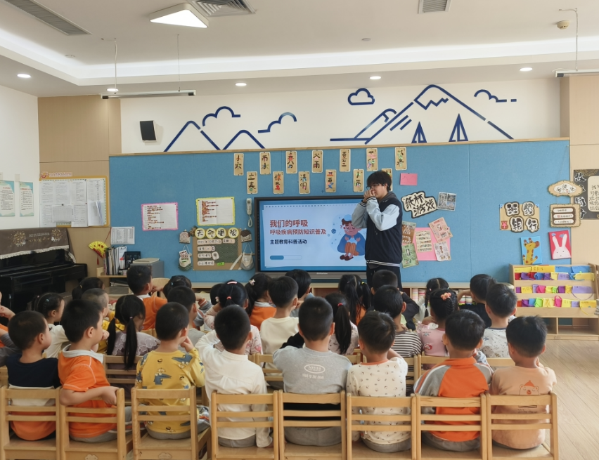 公益活动以“我们的呼吸”为主题,针对幼儿的认知特点,用通俗易懂的语言和形象生动的比喻,引导孩子们了解呼吸系统的组成器官的形态特点。师生们播放了《从鼻孔的视角看感冒的整个过程》视频片段,让孩子们更直观地了解人体的呼吸系统的重要性,最后通过科普乌龟和蜗牛的呼吸方式激发幼儿的好奇心和探索欲。