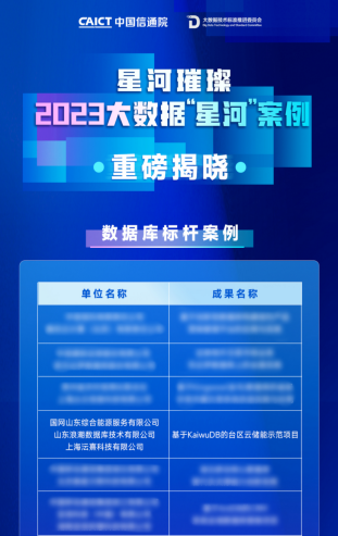 12月6日,由中国信息通信研究院、中国通信标准化协会大数据技术标准推进委员会(CCSA TC601) 共同组织的2023大数据“星河(Galaxy)”案例评选结果正式公示,浪潮数据库携手国网山东综合能源服务有限公司提报的“基于 KaiwuDB 的台区云储能示范项目”历经多环节严苛评审,从累计706份申报项目中脱颖而出,获评数据库方向“标杆案例”。