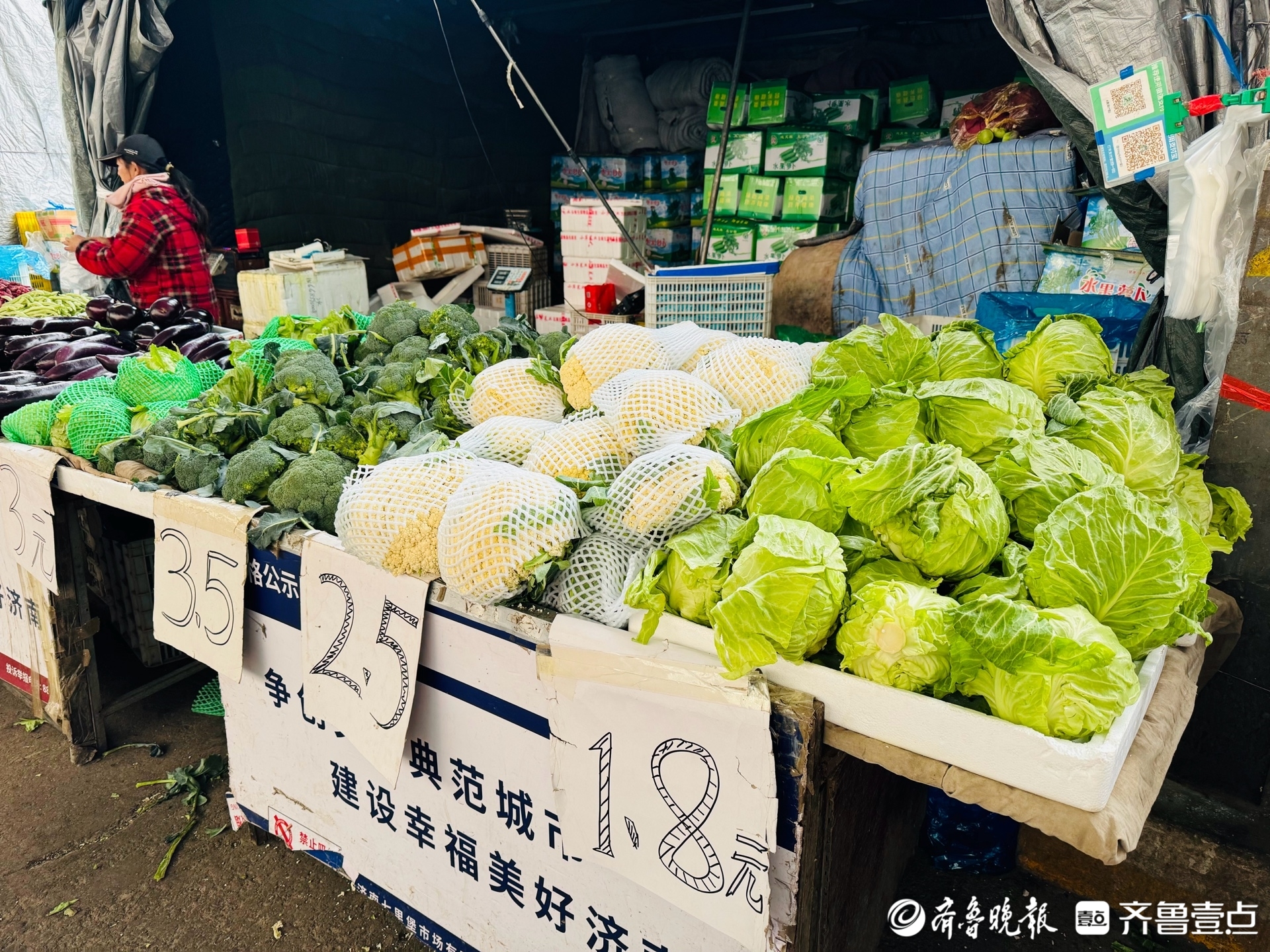 近日,济南迎来降雪,降温幅度超过10℃,开启“速冻模式”。气温骤降,市民的“菜篮子”有没有受影响?12月13日,齐鲁晚报·齐鲁壹点记者探访发现:目前各类蔬菜储备供应充足,受降雪和寒潮天气影响,部分蔬菜价格略有上涨,但整体菜价变化不大。