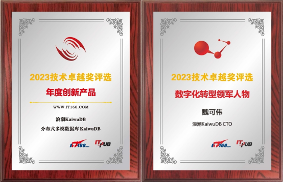 近日,由国内头部 IT 类垂直媒体 IT168 与旗下技术社区 ITPUB 联合发起的“2023 年度技术卓越奖”评选活动正式公布获奖名单,浪潮分布式多模数据库 KaiwuDB 荣获“年度创新产品”,KaiwuDB CTO 魏可伟获评“年度数字化转型领军人物”称号。