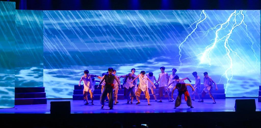 原创音乐剧《长岛渔号情》取材于长岛渔民的故事,讲述了船老大带领船员们勇敢闯海的故事。全剧包含“老大渔号起”“情绕海岛间”“闯海生死场”“凯旋归来时”四个篇章,塑造了船老大、少年母亲、少年、少女、船员们等一系列鲜活的人物形象,真实再现了几百年来长岛人民耕海牧渔、踏浪而歌的劳作场景。该剧通过极具地域特色的角色塑造、极富感染力的传统音乐和浓郁的胶东风格舞美设计,依托美轮美奂的视觉特效营造出沉浸式的舞台情境,对母子情、父女情、爱情以及出生入死的兄弟情和超越生死的师徒情进行了细致刻画,艺术性地展现了长岛的历史厚度、文化深度和精神高度,让现场观众在光影变幻和音符起伏中,体悟闯海精神的强大力量。