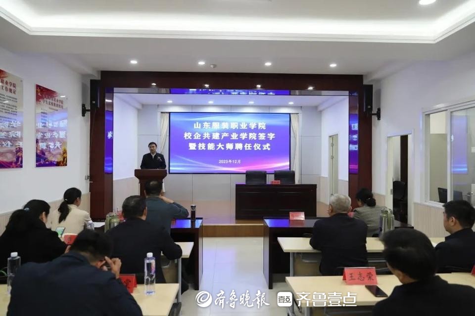 12月29日,山东服装职业学院校企共建产业学院签字暨技能大师聘任仪式举行。学院党委副书记、院长马培安,学院党委班子成员,签约企业代表,受聘技能大师,各系和有关处室负责同志以及学院师生代表参加活动。党委委员、副院长殷广胜主持仪式。