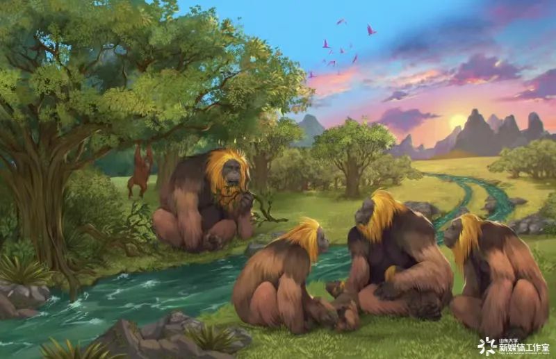 步氏巨猿生活场景复原图(Garcia / Joannes-Boyau 绘制)