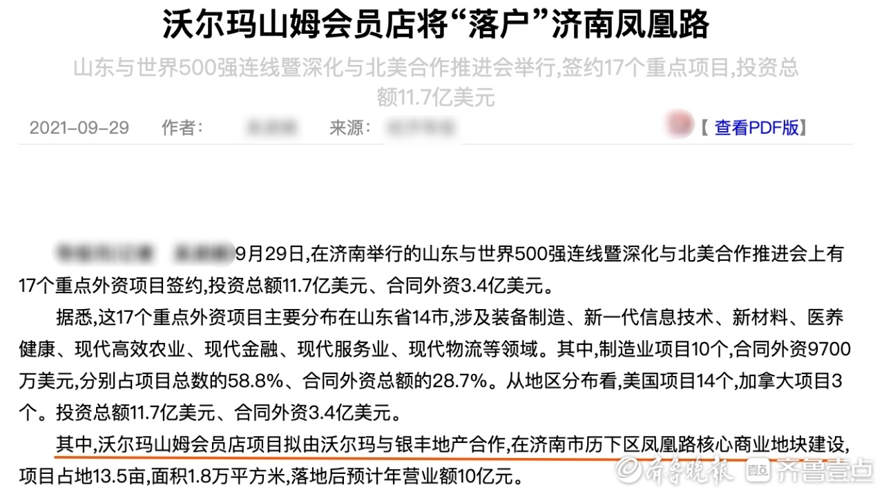 山姆会员店落户济南还在推进中