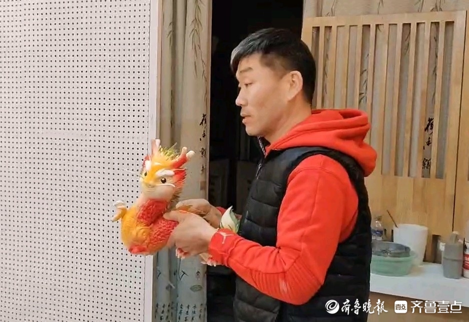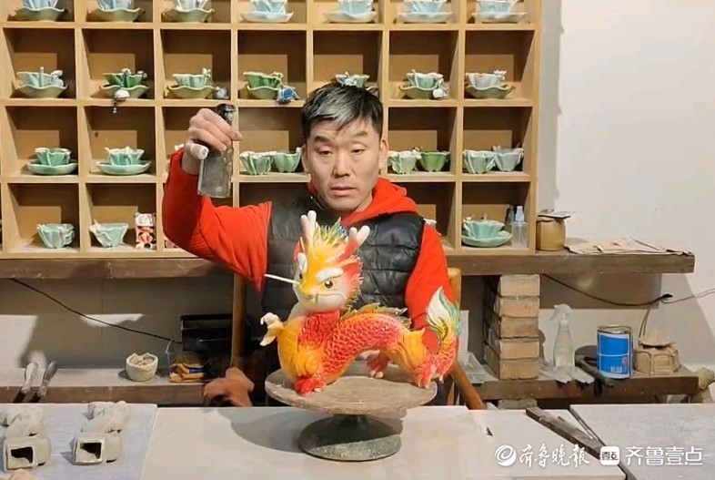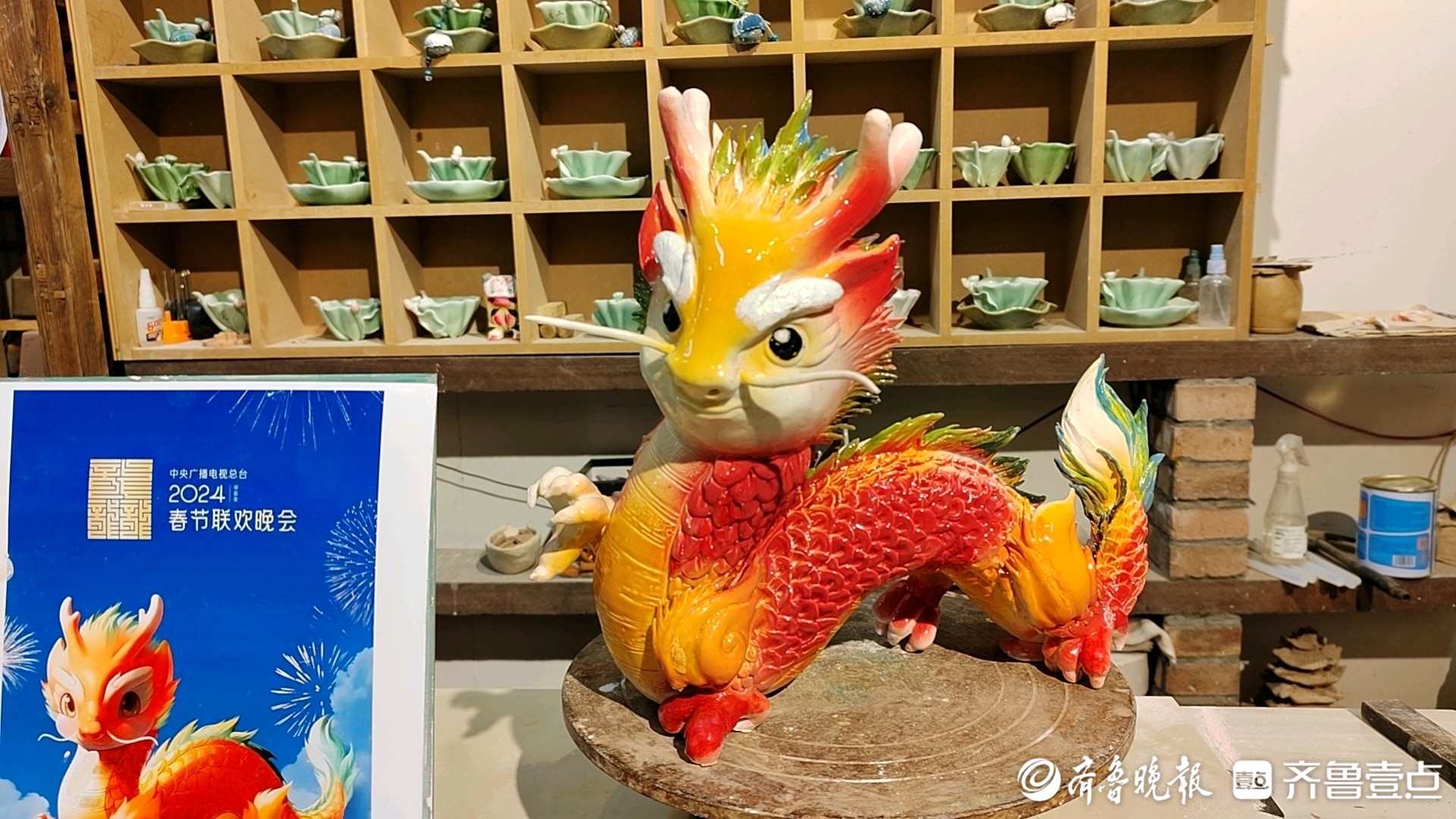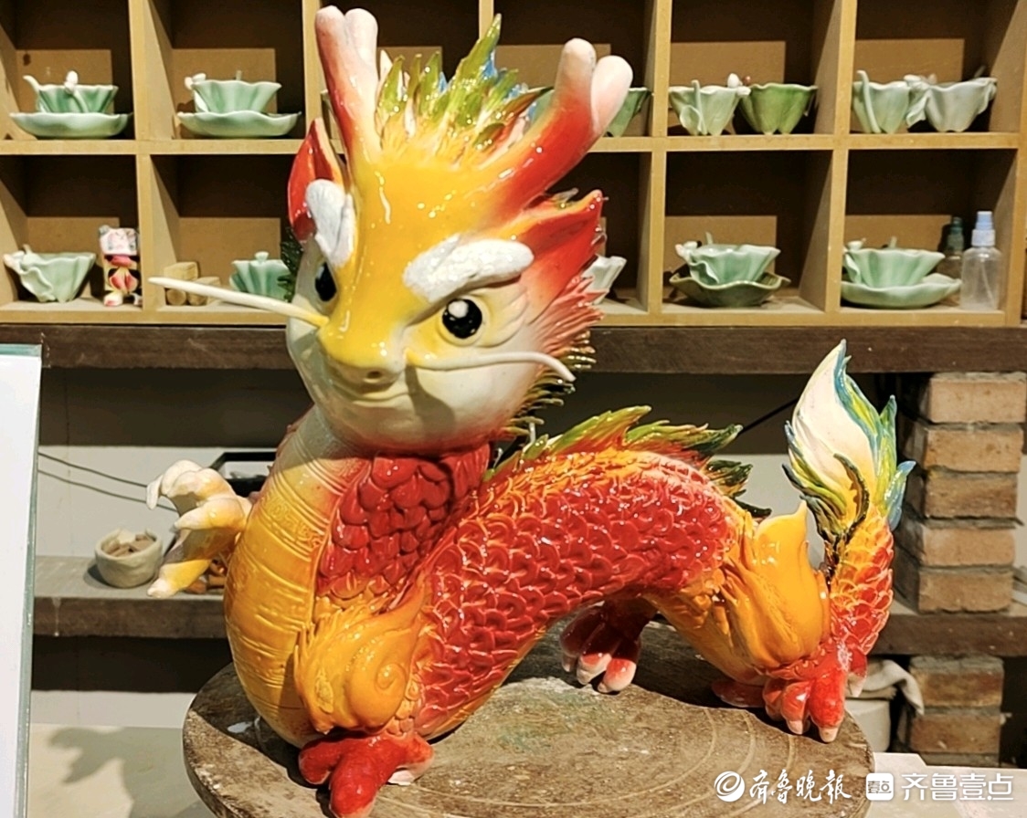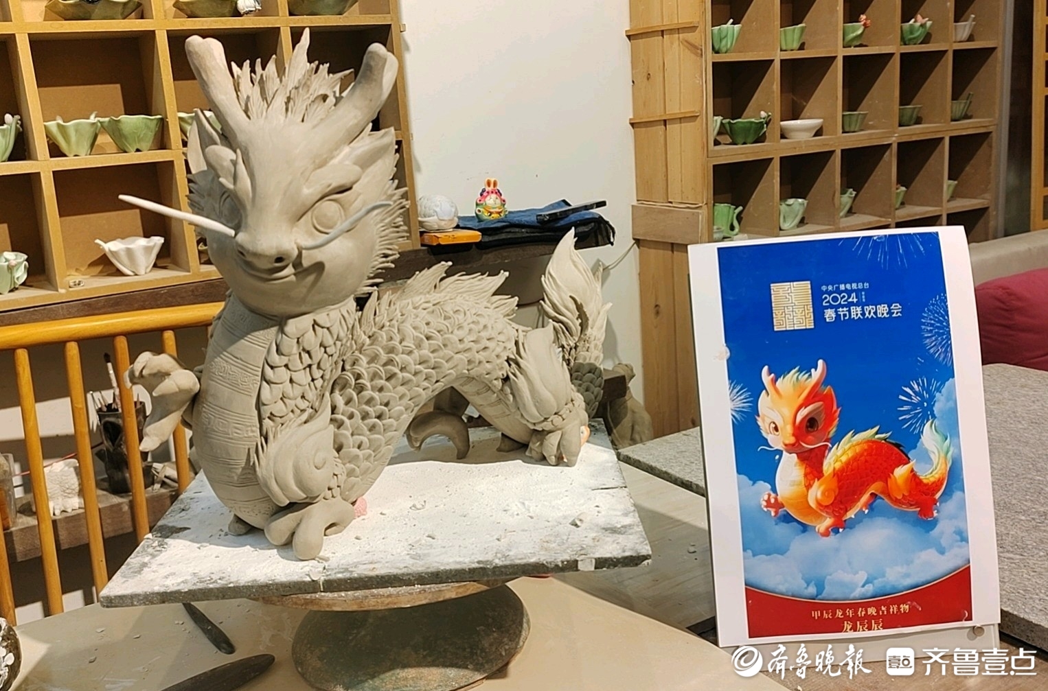 记者 周青先 2月7日夜,济南和为贵陶塑工作室,济南陶塑版“龙辰辰”新鲜出炉。彩色的“龙辰辰”陶塑又萌又可爱,长大约40厘米,高30厘米,重量8公斤。 原型央视龙年春晚吉祥物“龙辰辰”,它融合了七大中国古器物龙形图案形成的造型,充满浓郁的中国文化气息。它由济南陶塑非遗传人王令涛用10天完成,仅高温烧制就花了3天时间。