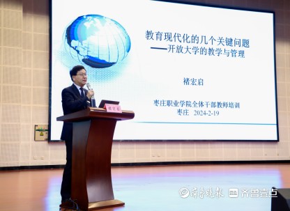 2月19日上午,枣庄职业学院特邀北京开放大学原校长、北京师范大学博士生导师褚宏启教授作《教育现代化的几个关键问题——开放大学的教学与管理》专题讲座,学院全体教职工参加培训。枣庄职业学院党委副书记、院长梁家和主持会议。